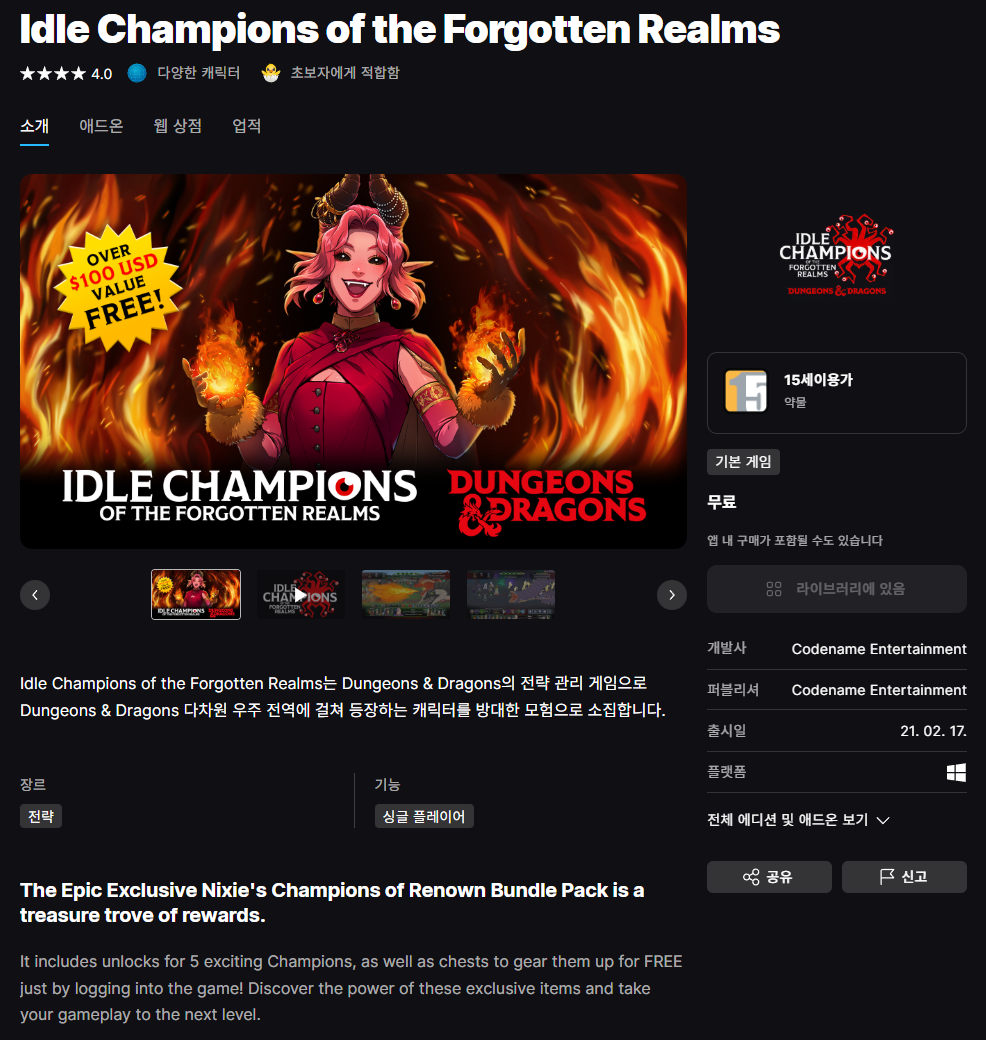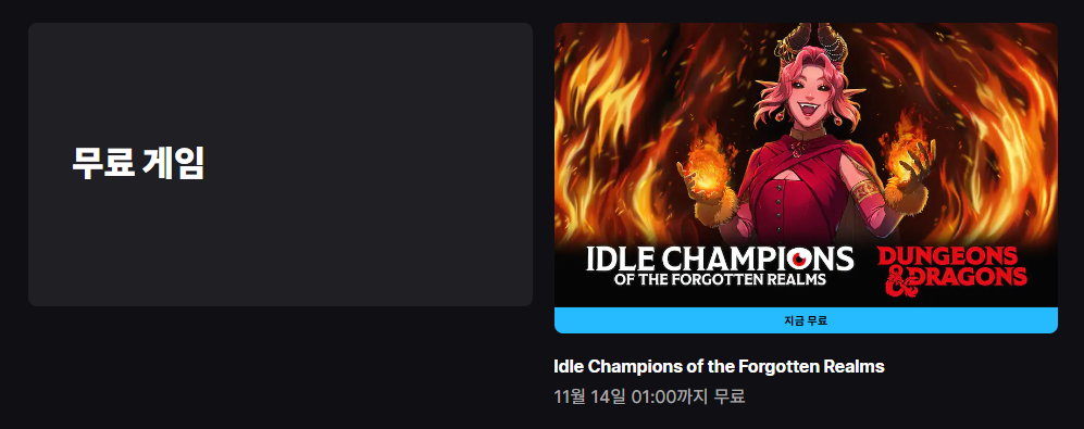 | [EPIC] 이번주 무료 게임 :: Idle Champions of the Forgotten Realms (0) | 2025.11.07 |