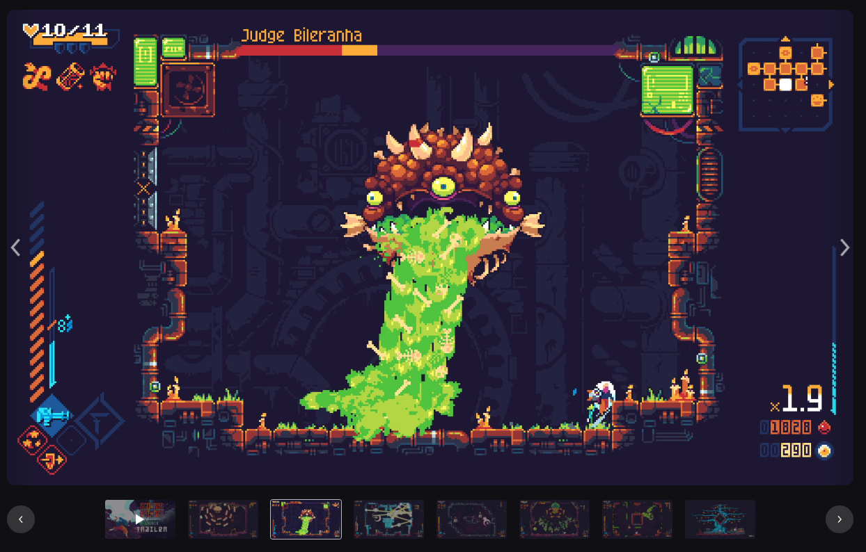 Eurogamer가 "Dead Cells와 Celeste의 만남"과 같다고 묘사한 대로 빠르게 진행되는 로그라이트 플랫폼 게임 플레이에 빠져들어 보세요.