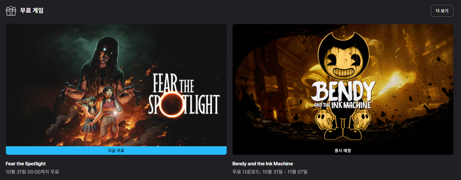 | [EPIC] 이번주 무료 게임 : Bendy and the Ink Machine, FIve Nights at Freddy's: Into the Pit (0) | 2025.11.01 |